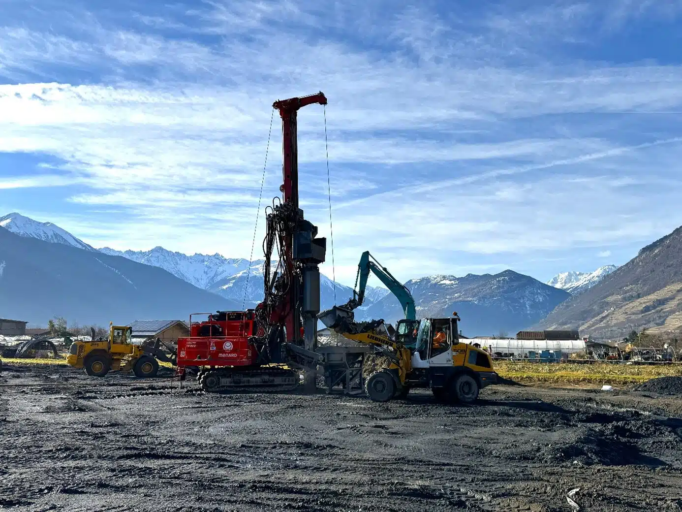 Menard designed and installed Stone Columns beneath the foundations of a new Migros supermarket in Fully (VS) to resolve settlement issues caused by the presence of a soft silt layer. The stone column technique – which uses no concrete and does not reduce groundwater flow capacity – was particularly well suited to this site, located within the Au groundwater protection zone.